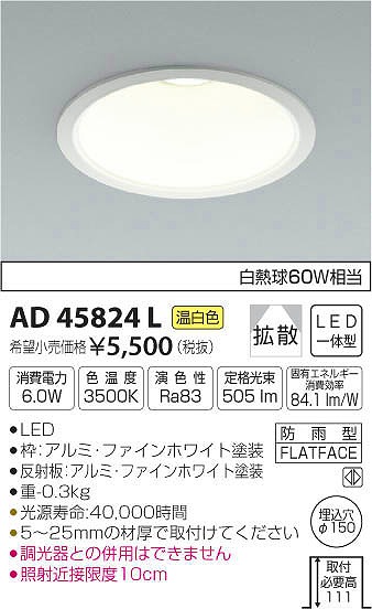 | メーカー / 型番 | コイズミ照明 AD45824L ダウンライト |