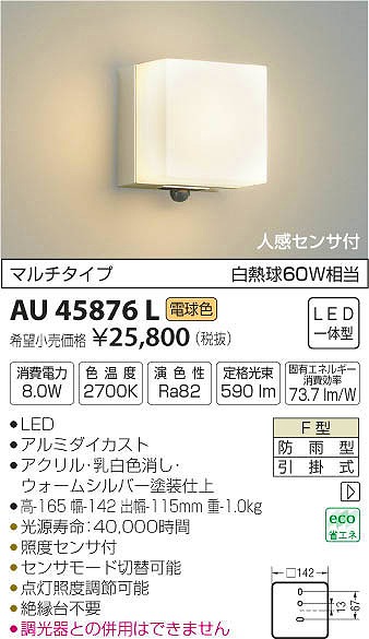 AU45876L コイズミ ポーチライト LED(電球色) センサー付