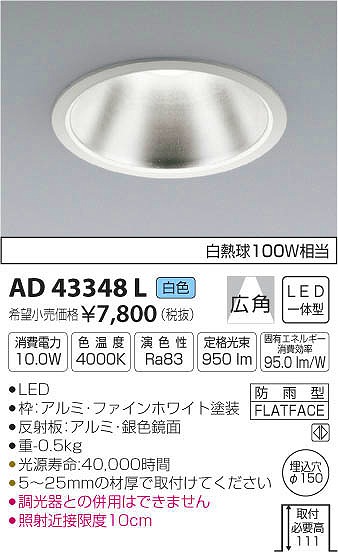 | メーカー / 型番 | コイズミ照明 AD43348L ダウンライト |