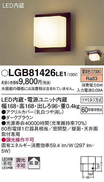 | メーカー / 型番 | パナソニック LGB81426LE1 ブラケット |