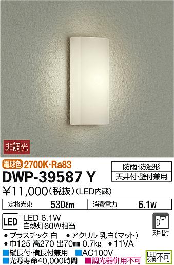 DWP-39587Y ダイコー 浴室灯 LED(電球色)