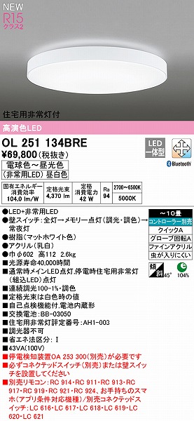 | メーカー / 型番 | オーデリック OL251134BRE シーリングライト |