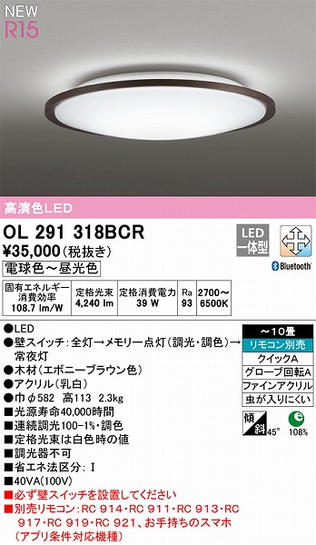| メーカー / 型番 | オーデリック OL291318BCR シーリングライト |