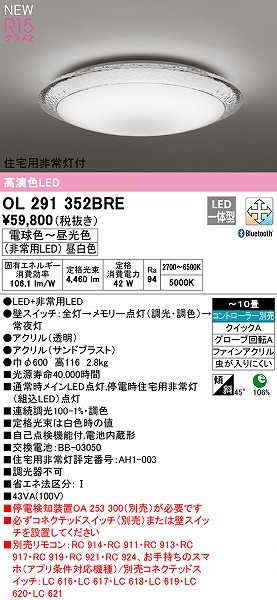 | メーカー / 型番 | オーデリック OL291352BRE シーリングライト |