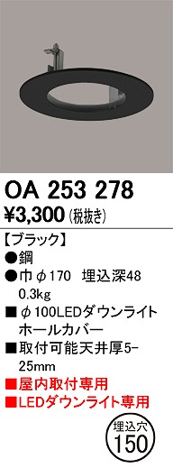| メーカー / 型番 | オーデリック OA253278 ダウンライトホールカバー |