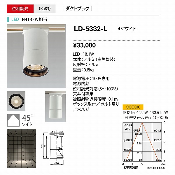 | メーカー / 型番 | 山田照明 LD-5332-L レール用シーリングライト |