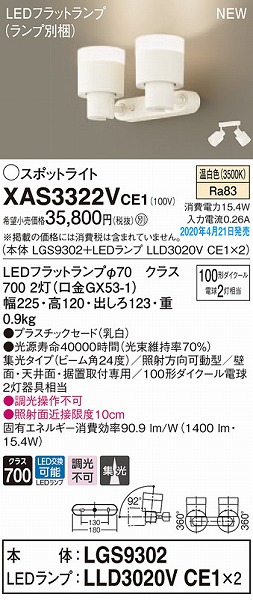 | メーカー / 型番 | パナソニック XAS3322VCE1 スポットライト |