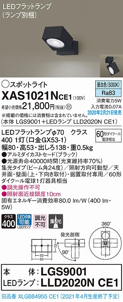 | メーカー / 型番 | パナソニック XAS1021NCE1 スポットライト |