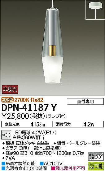 | メーカー / 型番 | DAIKO DPN-41187Y ペンダントライト |