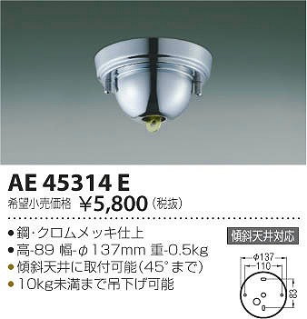 | メーカー / 型番 | コイズミ照明 AE45314E 傾斜天井用フランジ |