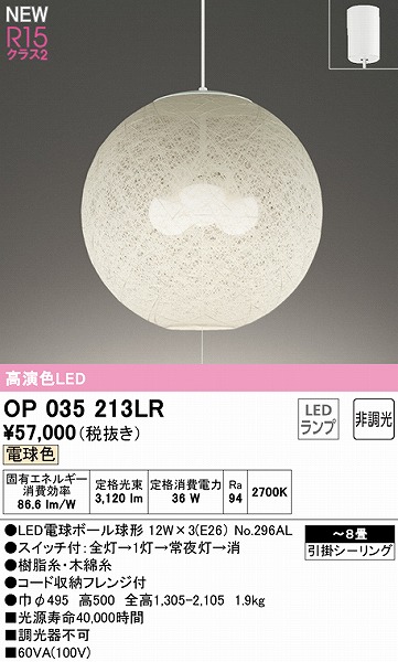 メーカー / 型番 オーデリック OP035213LR 和風ペンダントライト