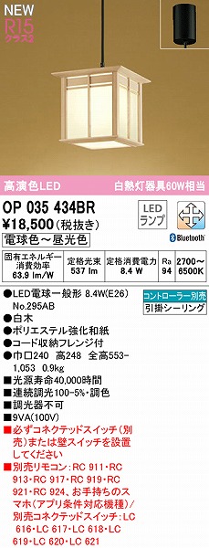 OP035434BR オーデリック 和風ペンダントライト LED 調色 調光 Bluetooth