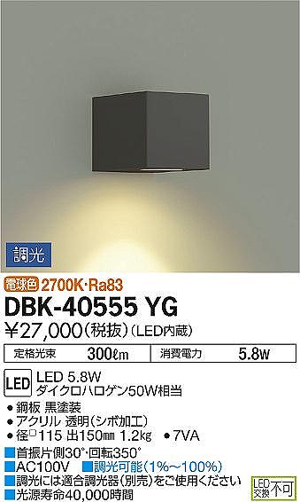 | メーカー / 型番 | DAIKO DBK-40555YG ブラケット |