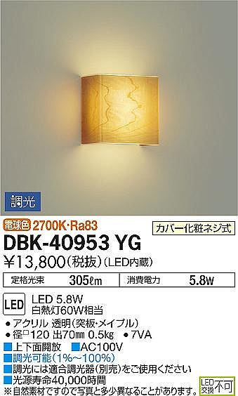 | メーカー / 型番 | DAIKO DBK-40953YG ブラケット |