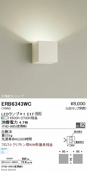 | メーカー / 型番 | 遠藤照明 ERB6343WC ブラケットライト |