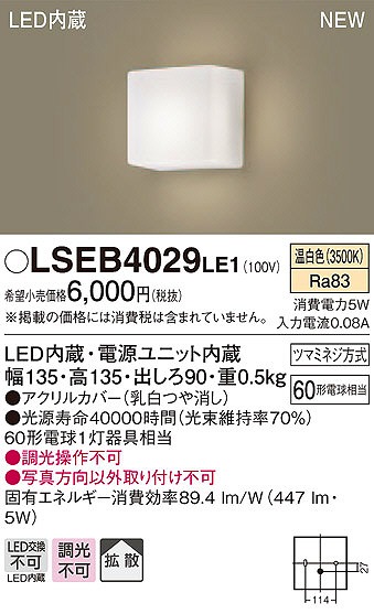 | メーカー / 型番 | パナソニック LSEB4029LE1 ブラケット |