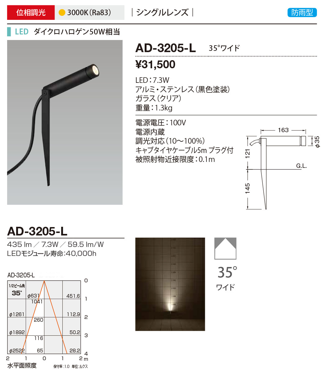 | メーカー / 型番 | 山田照明 AD-3205-L 屋外スポットライト |