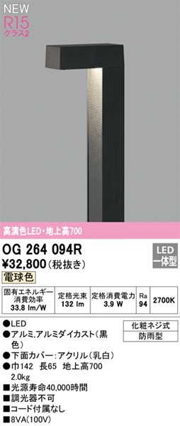 | メーカー / 型番 | オーデリック OG264094R ガーデンライト |