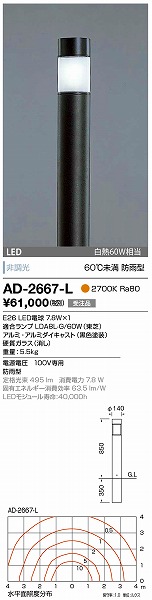 | メーカー / 型番 | 山田照明 AD-2667-L ガーデンライト |