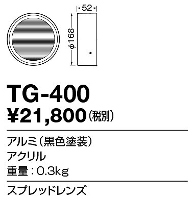| メーカー / 型番 | 山田照明 TG-400 スプレッドレンズ |