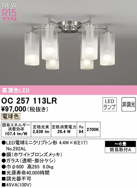 OC257113LR オーデリック シャンデリア 6灯 LED(電球色) 〜6畳