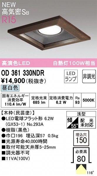 | メーカー / 型番 | オーデリック OD361330NDR 和風ダウンライト |