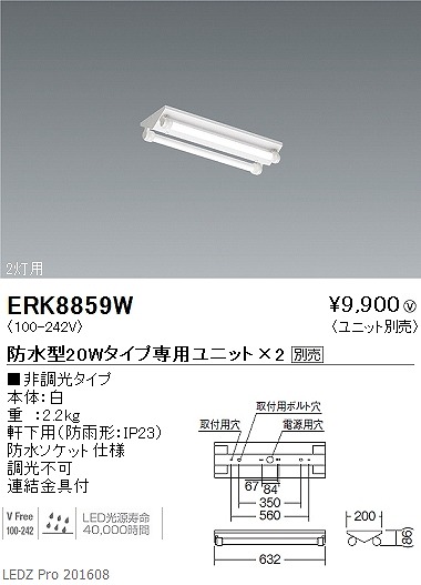メーカー / 型番 遠藤照明 ERK8859W 軒下用ベースライト (LED専用ユニット別売)