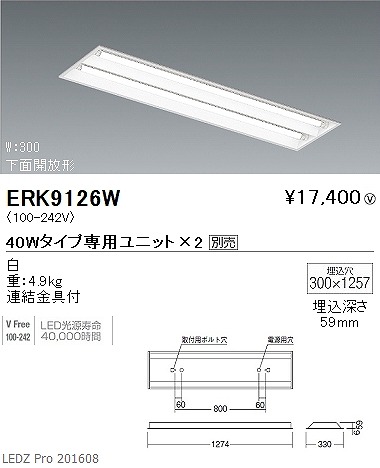 | メーカー / 型番 | 遠藤照明 ERK9126W ベースライト |