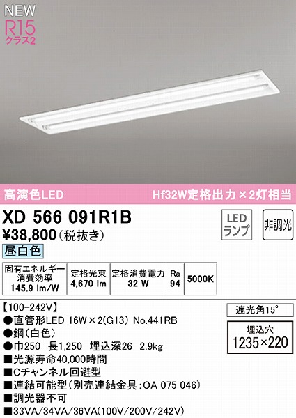 | メーカー / 型番 | オーデリック XD566091R1B ベースライト 40形 |