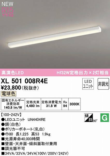 | メーカー / 型番 | オーデリック XL501008R4E ベースライト 40形 |