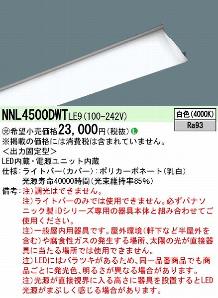 | メーカー / 型番 | パナソニック NNL4500DWTLE9 ライトバー 40形 |
