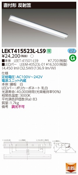 | メーカー / 型番 | 東芝ライテック LEKT415523L-LS9 ベースライト |