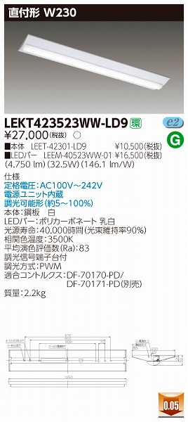 | メーカー / 型番 | 東芝ライテック LEKT423523WW-LD9 ベースライト |