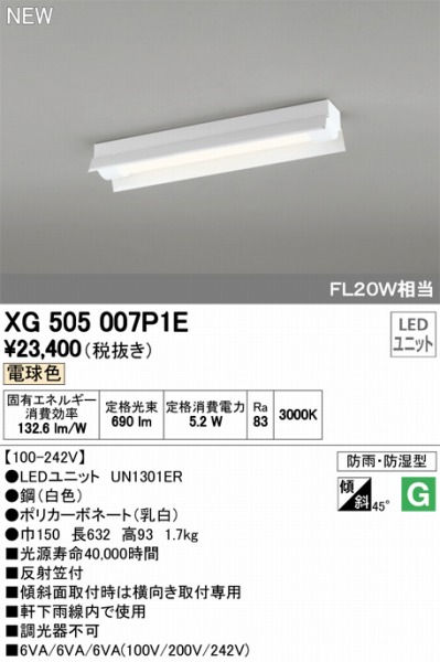 | メーカー / 型番 | オーデリック XG505007P1E ベースライト |