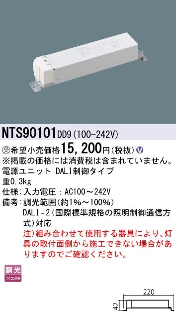 | メーカー / 型番 | パナソニック NTS90101DD9 電源ユニット DALI-2調光 100形 |