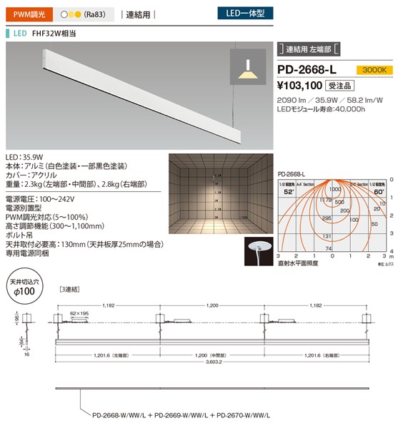 | 商品について | 薄さ“16mm”のBlade が切り開く新境地。その薄さからは想像できない配光制御設計により、照明プランニングの限界は大きく広がります。空間を機能的に照らすライン発光のベース照明。 Line type 電源電圧100〜242V 電源別置型 専用電源同梱 連結用左端部 PWM調光対応(5〜100%) 高さ調節機能(300〜1100mm) 3000K Ra83 FHF32W相当 天井取付必要高:130mm(天井板厚25mmの場合) ボルト吊り タスク&アンビエント |