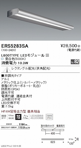 商品カテゴリ一覧 > 施設用照明器具 > 屋外用照明器具 > ERS5283SA 遠藤照明 屋外用ライン看板灯 L600 LED(昼白色) レクタングル