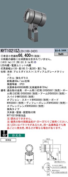 | メーカー / 型番 | パナソニック NYT1021SZLE9 屋外用スポットライト |