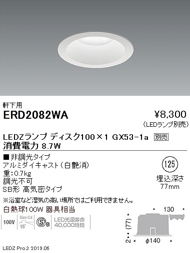 メーカー / 型番 遠藤照明 ERD2082WA 軒下用ダウンライト