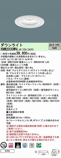 メーカー / 型番 パナソニック XNW2030WVLJ9 軒下用ダウンライト