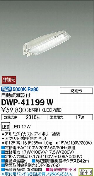 メーカー / 型番 DAIKO DWP-41199W 防犯灯 自動点滅器付