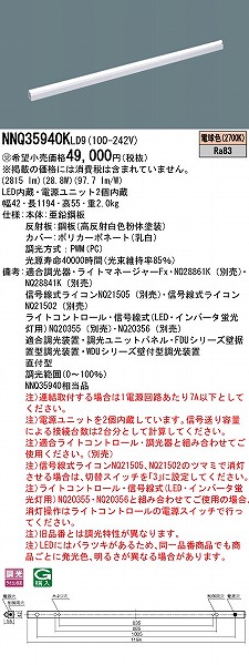 商品カテゴリ一覧 > 施設用照明器具 > 演出用照明器具 > NNQ35940KLD9 パナソニック 客席シームレス L1200 LED 電球色 調光