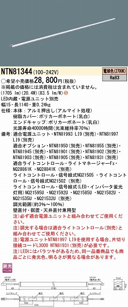| メーカー / 型番 | パナソニック NTN81344 シームレス建築部材照明器具 |