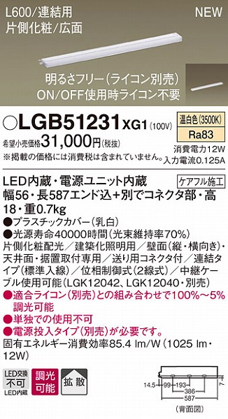 | メーカー / 型番 | パナソニック LGB51231XG1 建築化照明器具 |