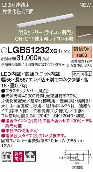 | メーカー / 型番 | パナソニック LGB51232XG1 建築化照明器具 |