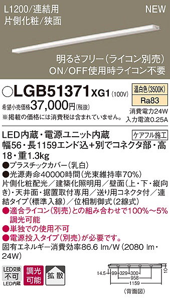 | メーカー / 型番 | パナソニック LGB51371XG1 建築化照明器具 |