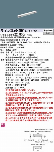 | メーカー / 型番 | パナソニック XLY045HWLJ9 シームレス建築化照明器具 |