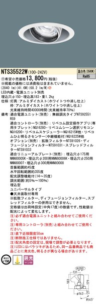 | メーカー / 型番 | パナソニック NTS35522W ユニバーサルダウンライト |