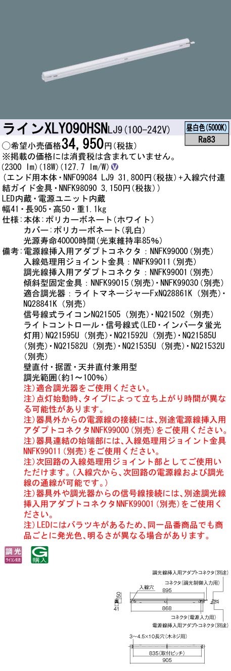 | メーカー / 型番 | パナソニック XLY090HSNLJ9 間接照明 |