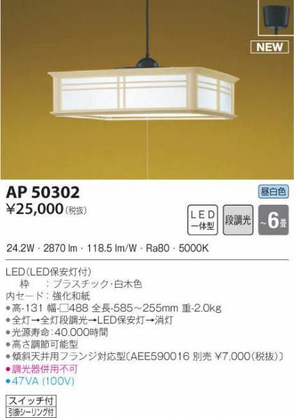 | メーカー / 型番 | コイズミ照明 AP50302 和風ペンダント |